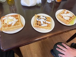 トッピングを思い思いに楽しみ、部屋中に甘い香りが