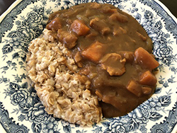 先月に引き続き、米不足対策として「オートミール」を使い、カレーを作りました。