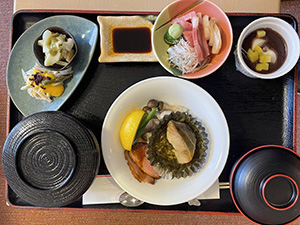 毎月恒例のお誕生会を催しました。3名の方がお誕生日を迎えられた2月のお祝膳は、百合根の木の芽、貝のすまし汁、ホッケの松前焼き、マグロとハマチのあしらい、新玉葱と白魚の炊き込みご飯、福餅のぜんざいなど6品。レクリエーションでは、ご入居様の無病息災を願って職員が瓦割を披露。割る前に土台から瓦が落ちてしまい、数枚割れてしまうハプニングもありましたが、ご入居者様の笑い声に職員も一安心?!