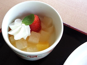デザートのフルーツ杏仁豆腐は、さっぱりとした甘さで、濃厚な中華料理の後にぴったりでした。