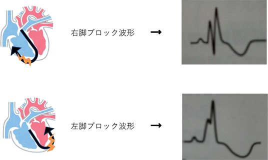 右側の伝達障害の場合を右脚ブロック・左側の場合を左脚ブロックと呼びます。